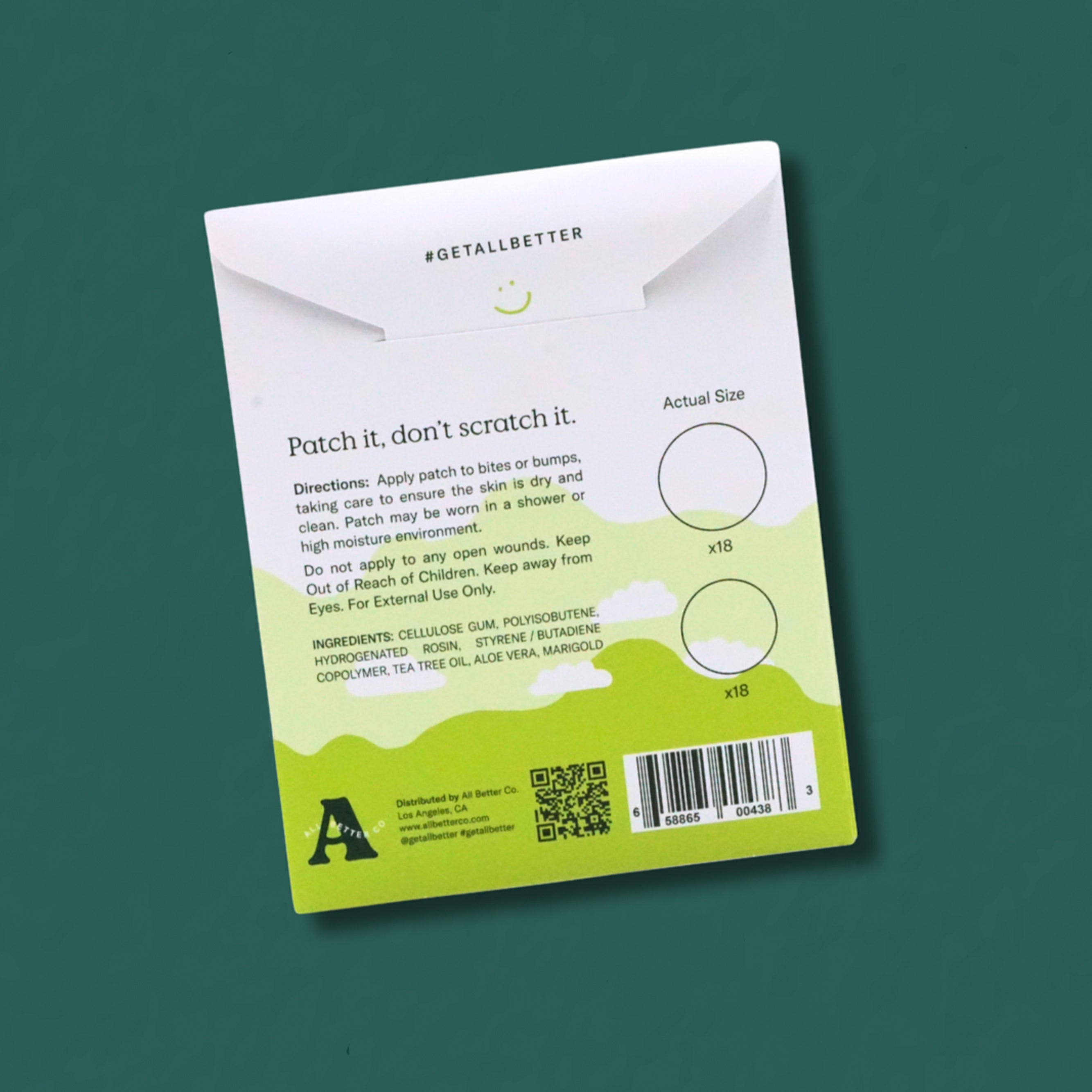Smart Relief for Itchy Bumps and Bites: This first-of-its-kind patch creates a gentle seal around the bite or bump, helping your skin calm down faster. The hydrocolloid base draws out irritation while our hero ingredient — tea tree oil — helps soothe inflammation and quiet the itch.*