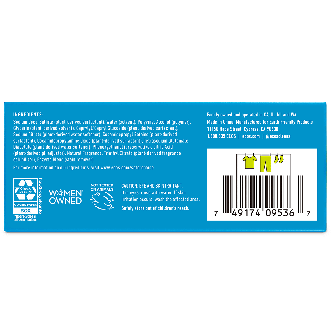 Water (solvent), Polyvinyl Alcohol (polymer), Sodium Lauryl Sulfate (plant-derived surfactant), Kaolin (mineral-based builder), CaprylylCapryl Glucoside (plant-derived surfactant), Silica (mineral-based builder), Cocamidopropyl Betaine (plant-derived surfactant), Glycerin (plant-derived solvent), Sodium Citrate (plant-derived water softener), Cocamidopropylamine Oxide (plant-derived surfactant), Phenoxyethanol (preservative), Dimethicone (polymer), Saponins (plant-derived surfactant), Citric Acid (plant-derived pH adjuster), Protease Enzyme Blend (enzyme stain remover)