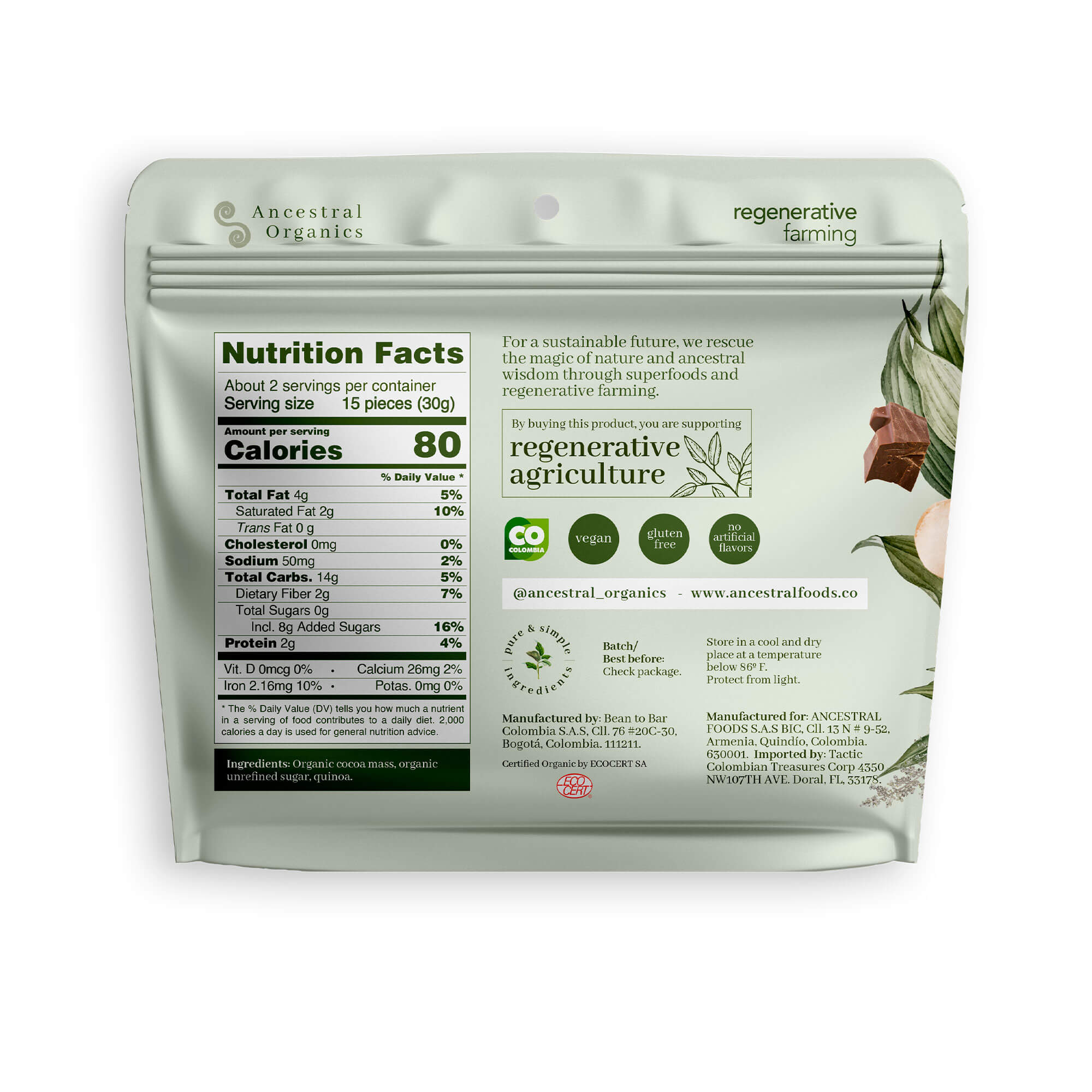 Experience a delightful marriage of textures and flavors with our Organic Dark Chocolate Covered Quinoa. Crunchy quinoa clusters meet velvety dark chocolate, creating a symphony of taste in every bite. Indulge in this unique treat that combines the wholesome goodness of organic quinoa with the rich allure of dark chocolate. Elevate your snacking moments with this exquisite blend of organic delights and decadent chocolate.