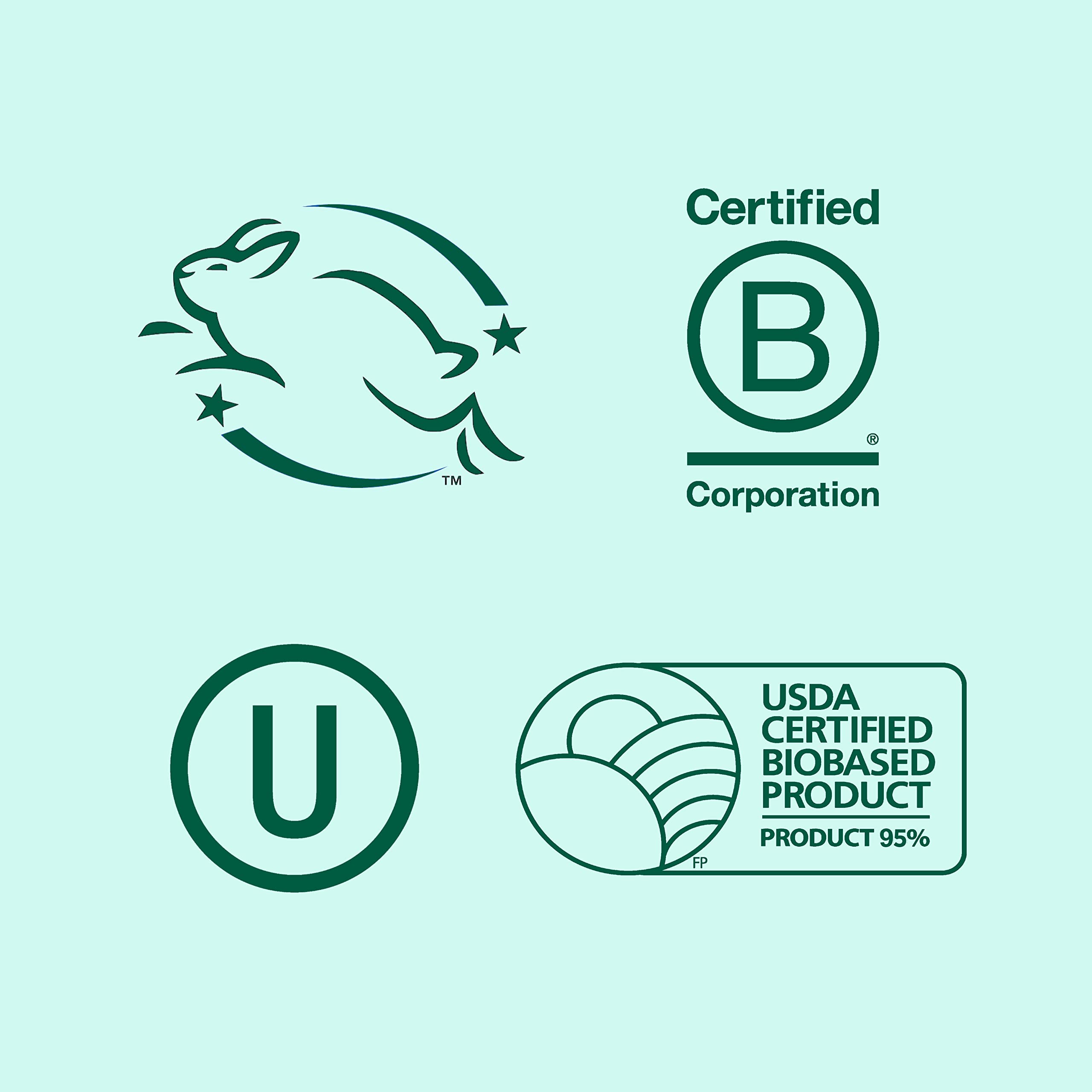Water, sodium lauryl sulfate (plant-derived cleaning agent), glycerin (plant-derived foam stabilizer), lauramine oxide (plant-based cleaning agent), caprylyl/myristyl glucoside (plant-derived cleaning agent), magnesium chloride (mineral-based viscosity modifier), citric acid (plant-derived pH adjuster), and benzisothiazolinone and methylisothiazolinone (synthetic preservatives).